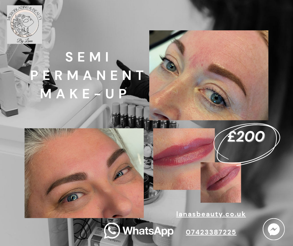 🌺Eyebrows: Creating natural-looking hair strokes or a soft, powdered effect. 🌺Eyeliner: Defining and brightening the eyes. 🌺Lip blush: Enhancing lip color and giving a more youthful appearance !!! Top up after 4-6 weeks £50